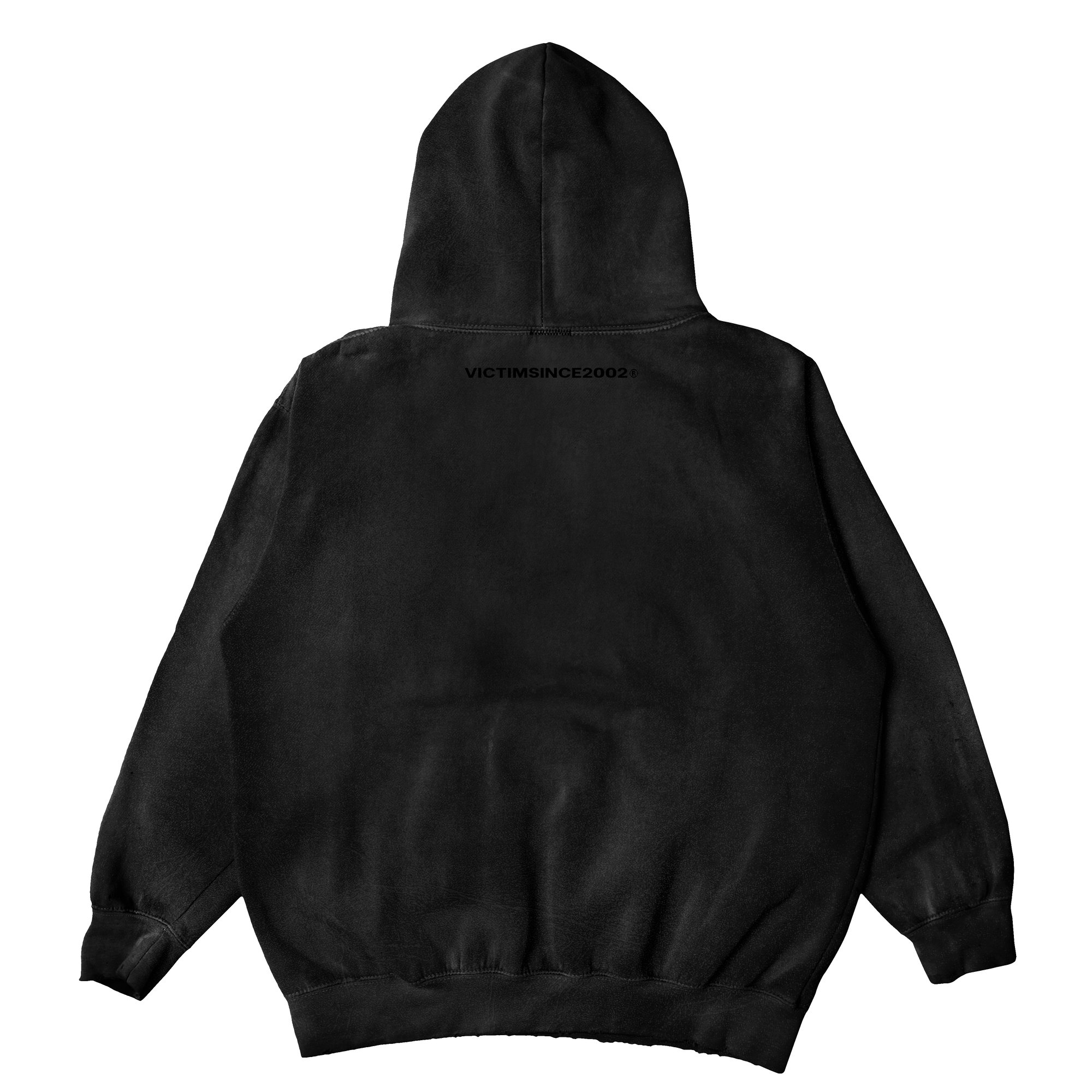 DIRECT TO GARMENT PRINTING METHOD. VICTIMSINCE2002 EMBROIDERY ON BACK.